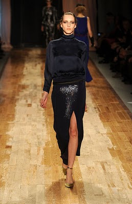 I feel like I need to preface this post by telling you that there are TONS of images to follow because, well I just couldn't bear to cut many looks out of this absolutely beautiful collection. I mean this is the stuff of dreams... quite literally in my case. This season as always, Marchesa designers Georgina Chapman and Keren Craig played with volume but mixed it up with leather cut-outs on lace, intricate beading, and deconstructed silk. What appears to be beautiful lace details and inserts throughout the collection, is actually elaborately embroidered crystals and pearls-an expensive choice, but so worth it. Victorian influences were apparent here again with high-neck collars, and, like Prabal Gurung, Chapman and Craig have said that they were inspired by Great Expectations this time around. Colors included lavenders, cream, and pops of red and black. Shades of porcelain tulle layered to create ruffles, and skirts effortlessly pooled on the ground were the highlights of the show. Sky-high Louboutins were paired with dainty beaded socks to finish off the decadent looks. The drama was out of this world, and the beauty of this collection will be lost on no one. Their A-list clientele will not be disappointed, and we can definitely plan on seeing some of these dresses again on the red carpet very soon.